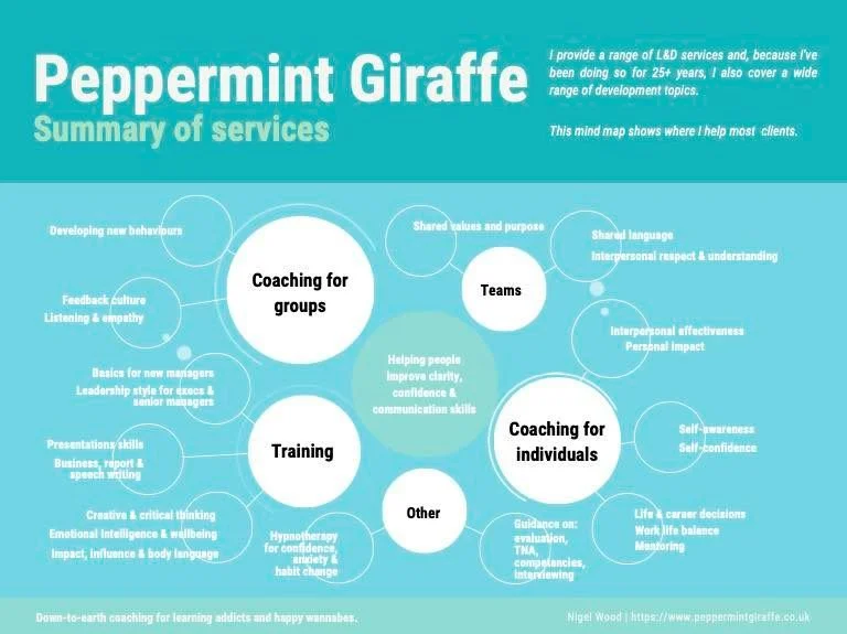 I studied Psychology at Dundee University and spent a life-changing second year of that honours degree in Montreal, Canada. After working in HR/ L&D for six years, getting my Masters in Organisational & Occupational Psychology, and then spending five years in a boutique training consultancy, I decided to become self-employed and I created βPeppermint Giraffeβ. This was back in 2006 and Iβve not regretted it for a single moment.